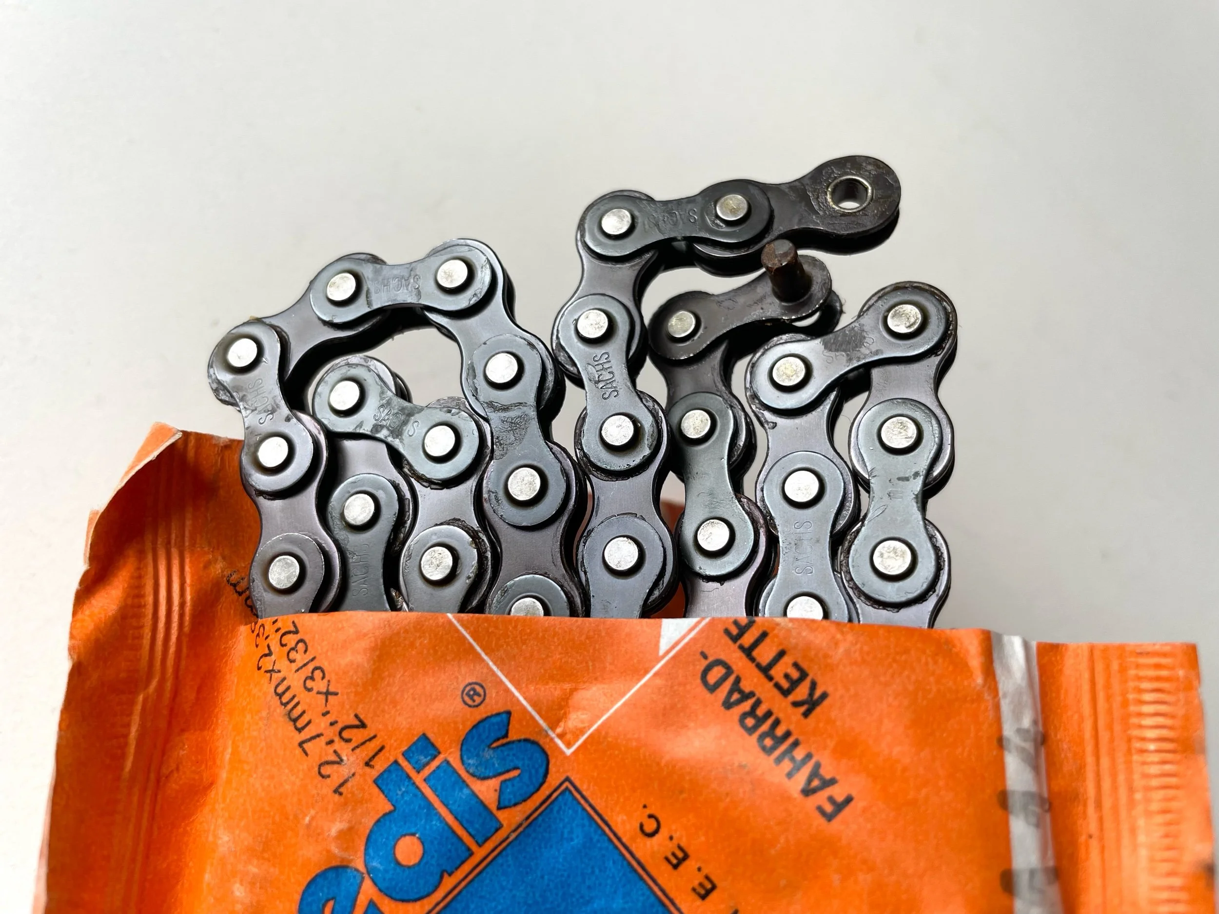 Categories: All Bottom Brackets Brakes Cables & Clips Cassettes & Cogs Chains Chainrings Clothing Cranks Derailleurs Frames Gear shifters Handlebars Headsets Hubs Misc Pedals & Toe Clips Piccolinni / small spares Rims Saddles Seatposts Spare parts Stems Tools Tyres All / NOS Vintage 1960s RENOLD 1/2" x 1/8" 108 link bicycle chain £55.00 NOS Vintage 1980s EVEREST CORSA 1/2" x 3/32" 7 speed silver bicycle chain £75.00 Out of stock NOS Vintage REGINA EXTRA Anniversario Syncro 1/2" x 3/32" silver bicycle chain £125.00 Out of stock NOS Vintage 1950s/60s STELLA 1/2" x 1/8" 110 link bicycle chain £45.00 Out of stock NOS Vintage 1980s SEDIS 114 link 1/2 inch 3/32" road chain £65.00 NOS Vintage 1970s/80s REGINA EXTRA 1/2" x 3/32" 6 speed 112 link bicycle chain £75.00 Out of stock NOS Vintage 1980s REGINA EXTRA CX 1/2" x 3/32" 7 speed 114 link bicycle chain £95.00 Out of stock NOS Vintage 1970s/80s REGINA BX 1/2" x 3/32" 6 speed 112 link bicycle chain £79.00 Out of stock NOS Vintage SHIMANO DURA-ACE 1/2" x 3/32" super narrow 9 speed bicycle chain £75.00 Out of stock NOS Vintage SACHS Power Glide SC-40 1/2" x 3/32" 8 speed 116 link bicycle chain £55.00 Out of stock NOS Campagnolo Record C9 1/2" x 3/32" 8 speed / 9 speed bicycle chain £55.00 Out of stock NOS Vintage 1950s REGINA GRAN SPORT - Tipo Corsa 112 link 1/2 inch 1/8" chain £125.00 NOS Vintage 1980s REGINA "Copper" Singlespeed Track BMX 1/8" bicycle chain £85.00 NOS Vintage 1950s REGINA-EXTRA Track/Pista 108 link 1/2 inch 1/8" chain £95.00 NEW YBN MK926 Track/Pista Superleggero Super light - 102 link 1/2 x 1/8" chain £25.00 Out of stock BARBIERI PNK 1/2" x 3/32" 7 or 8 speed grey/bronze Professional bicycle chain £15.00 NOS Vintage YABAN 1/2" x 3/32" chain £35.00
