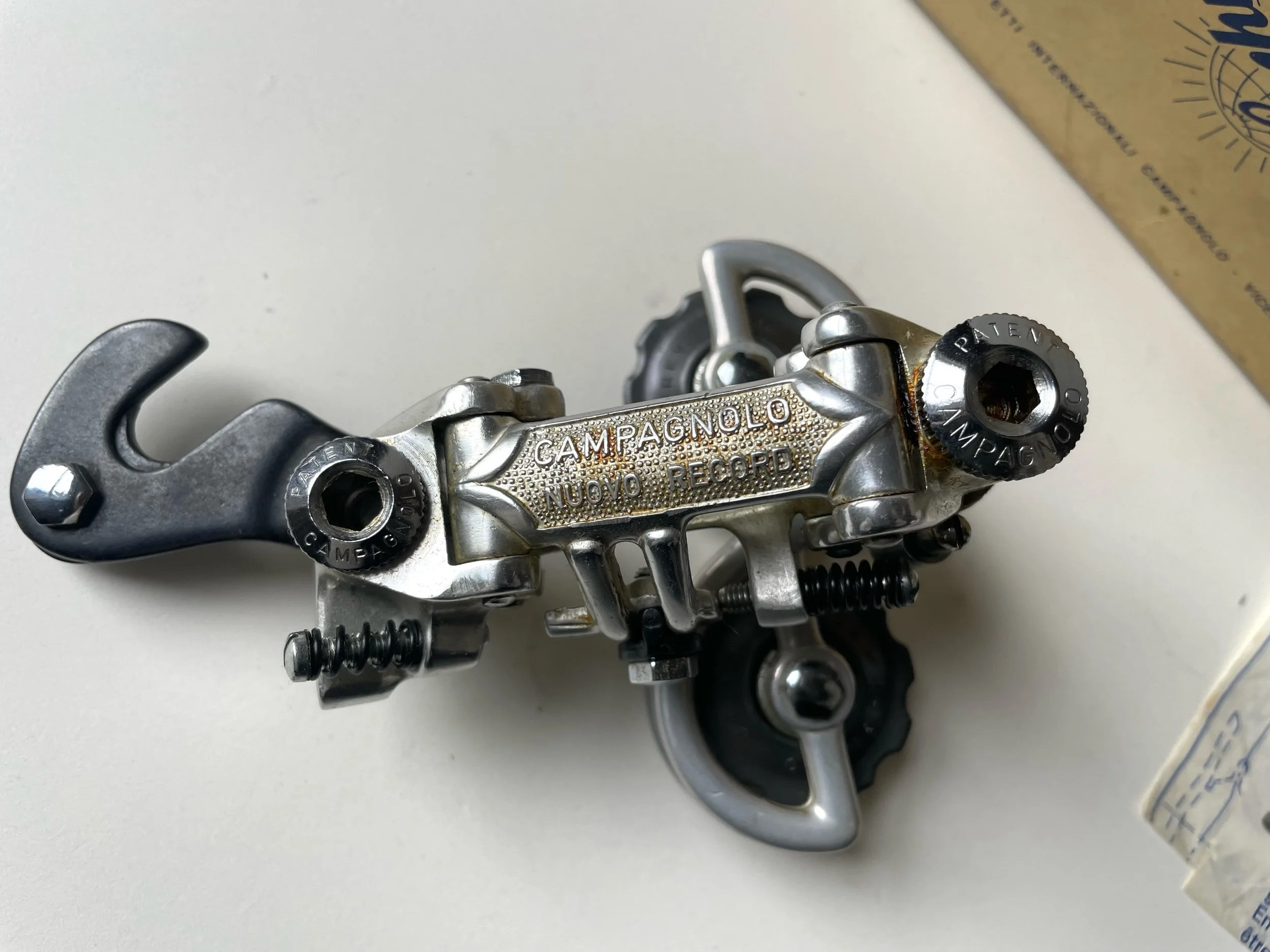 This is an early version 'PATENT-70' Campagnolo Nuovo Record rear derailleur from 1970.