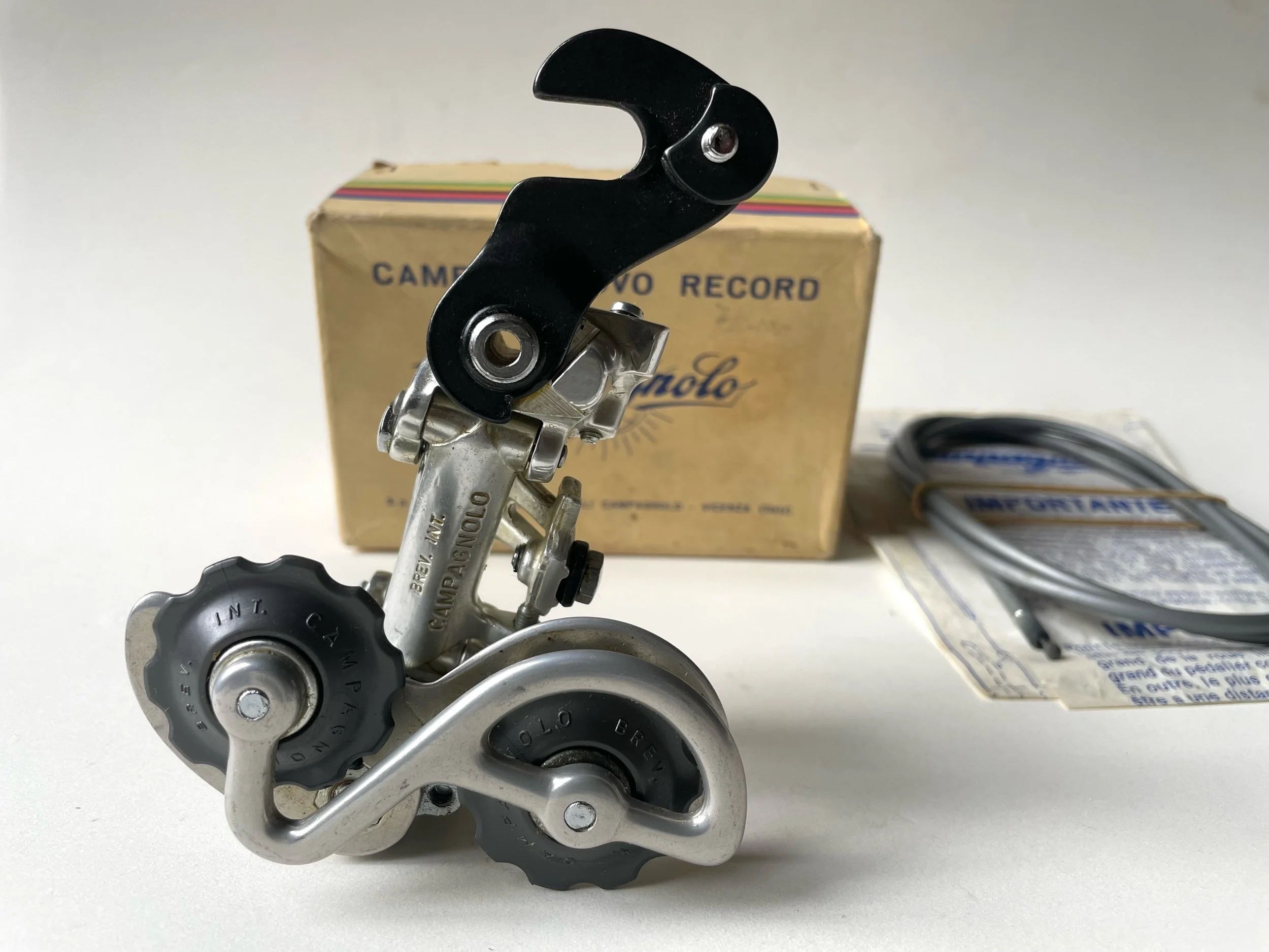 Rare Vintage 1970s Campagnolo Nuovo Record rear derailleur in New Old Stock condition.