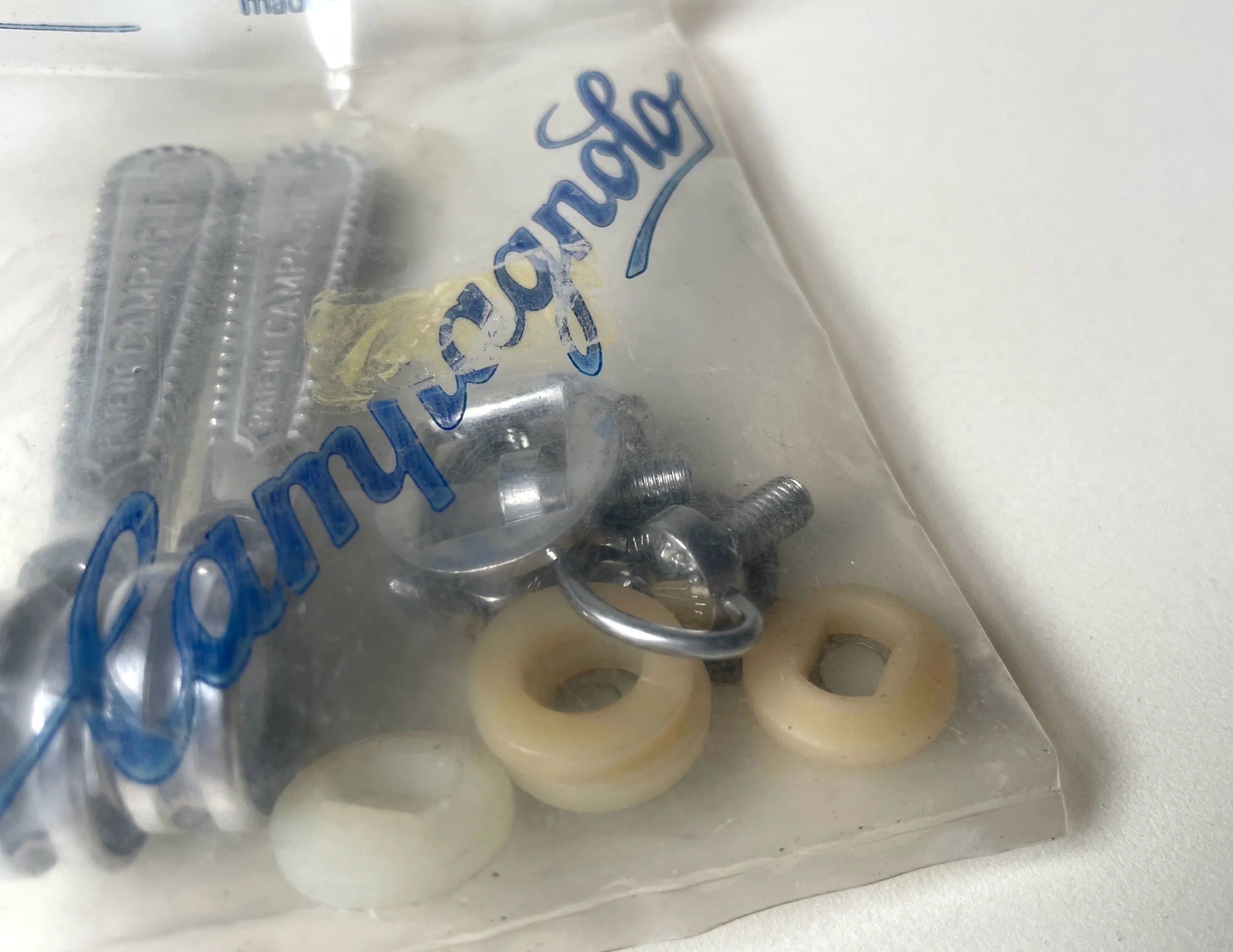 One pair of Vintage 1970s/80s Campagnolo Super Record braze-on gear shifters in New Old Stock condition.
