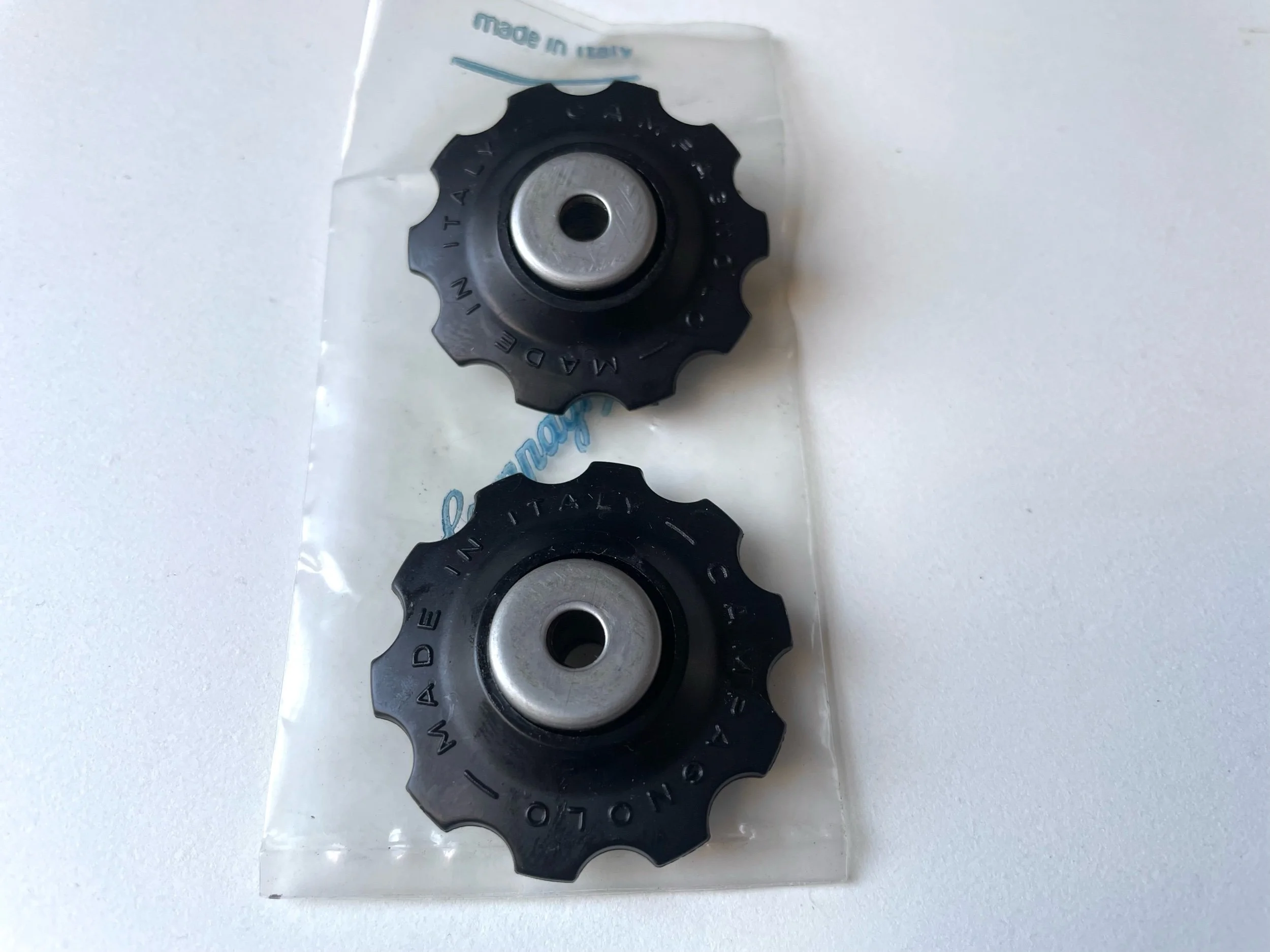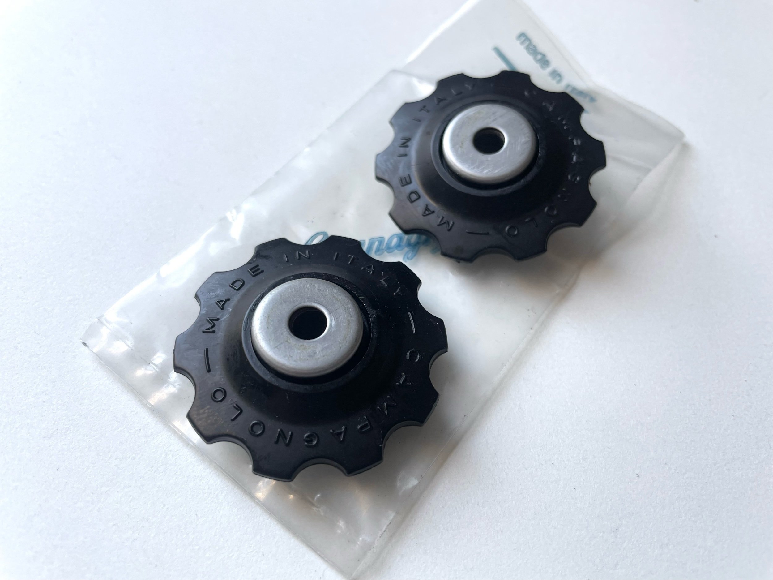 These are original Campagnolo upgrade jockey wheels and come exactly as pictured.