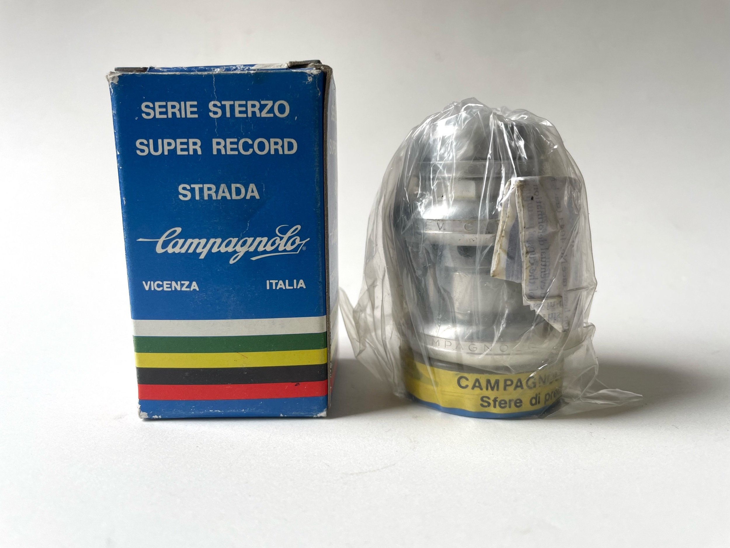 Vintage 1980s Campagnolo Super Record Strada alu headset in New Old Stock condition.