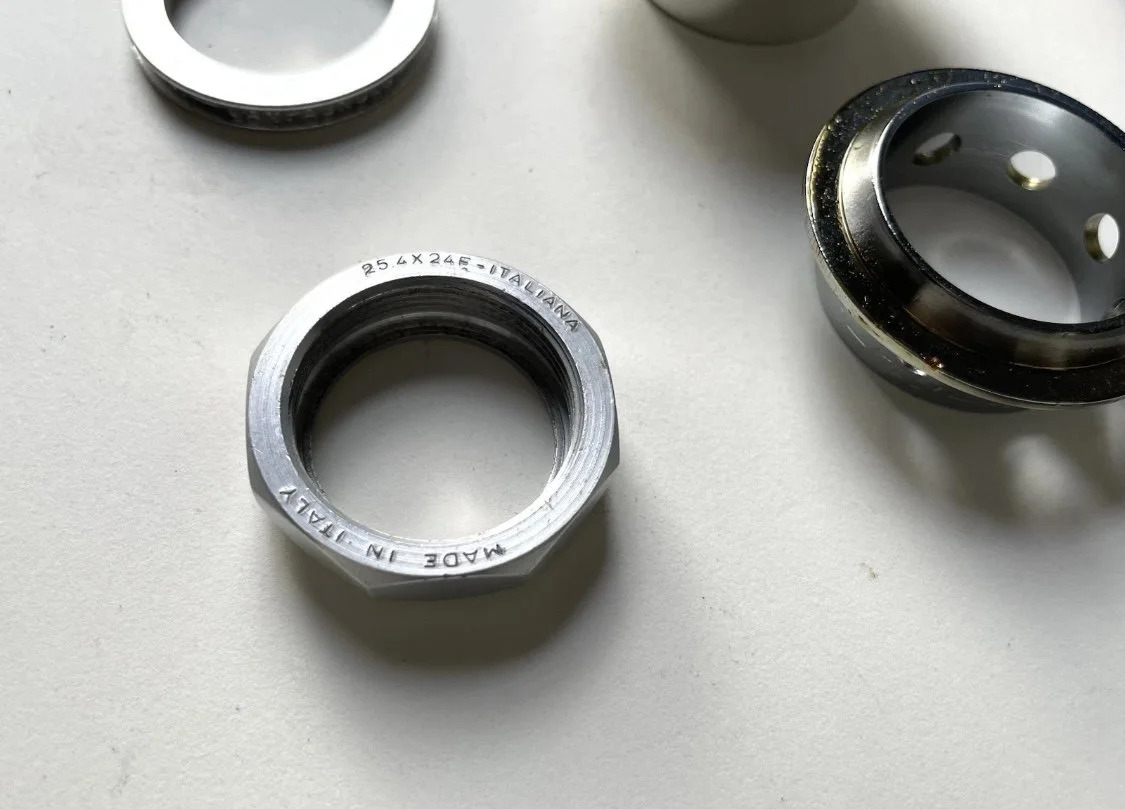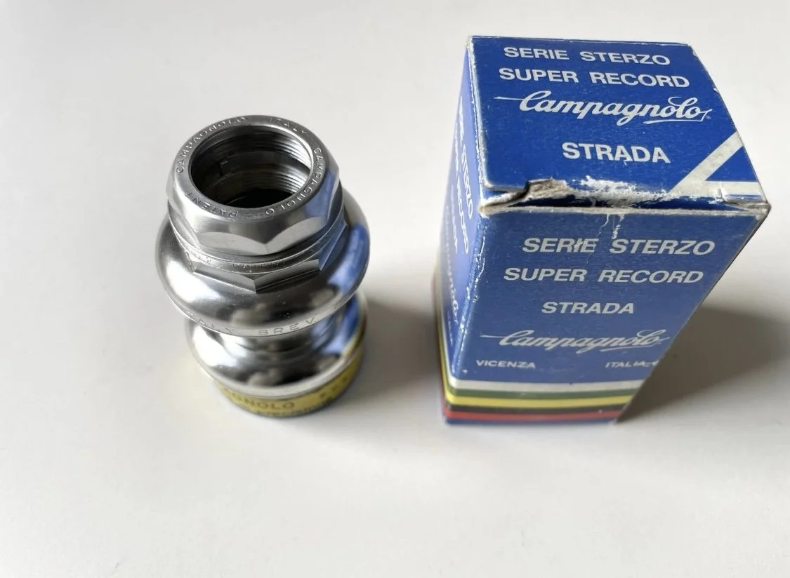 Vintage 1980s Campagnolo Super Record alu headset in New Old Stock condition.