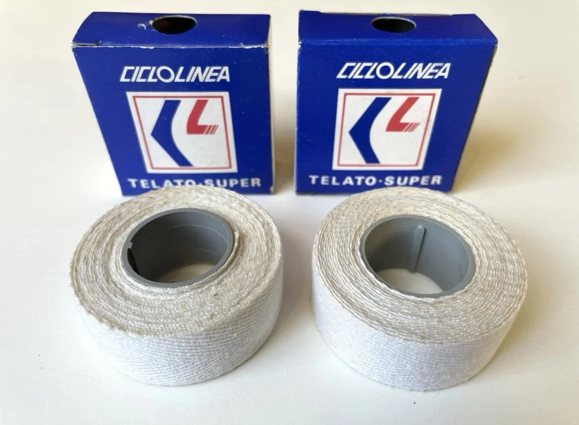 Vintage 1980s CICLOLINEA white cotton handlebar tape in New Old Stock condition.