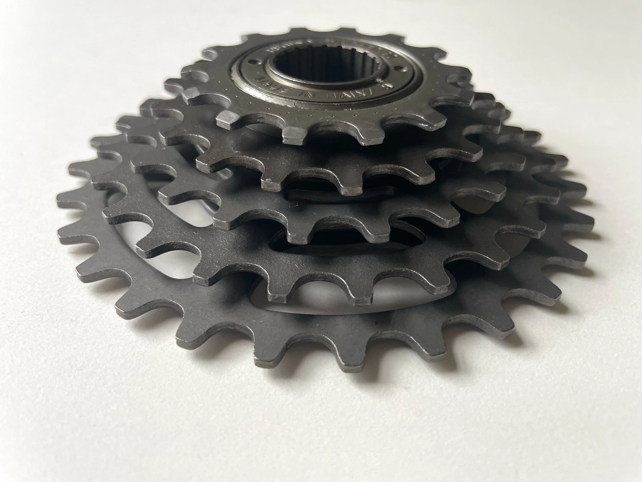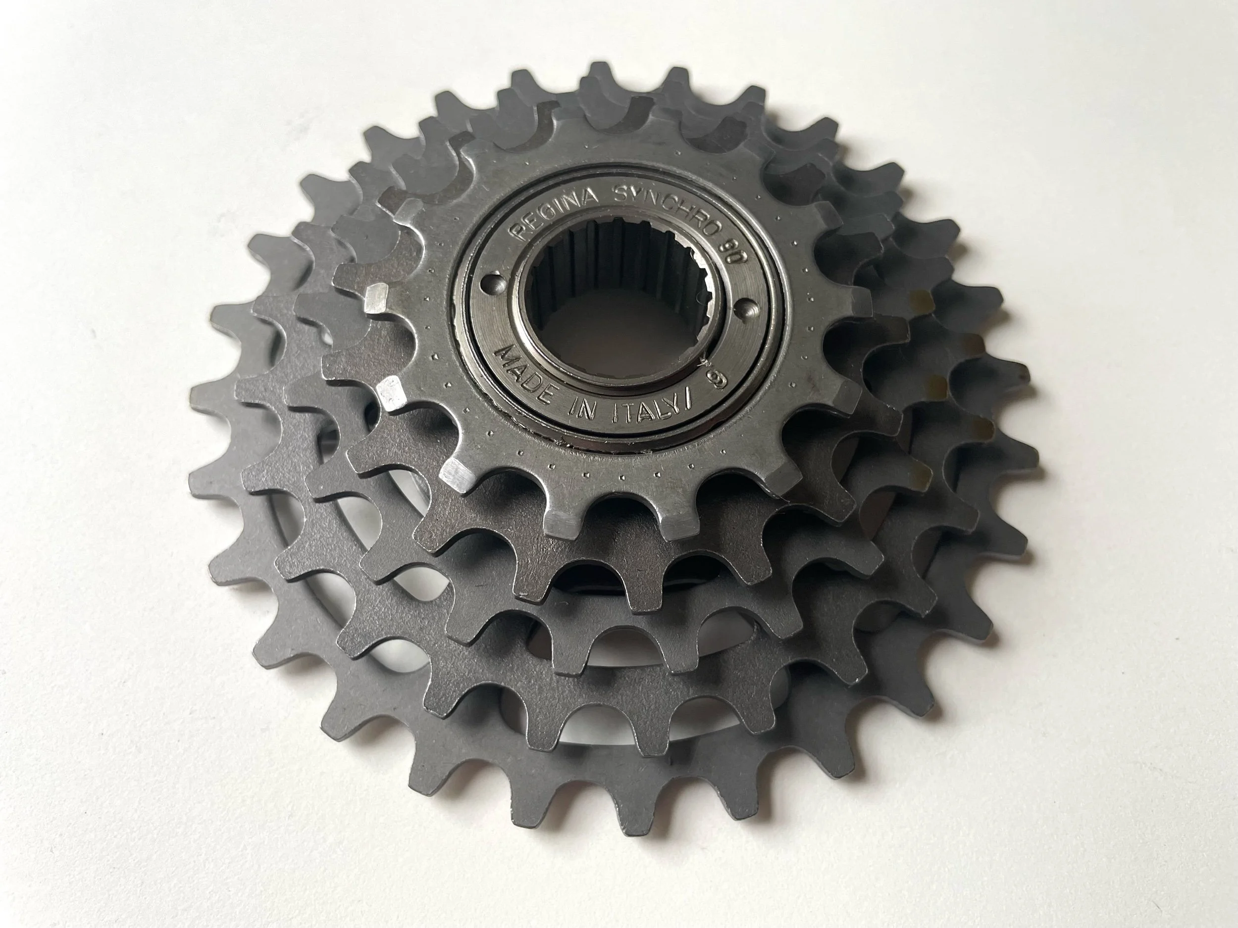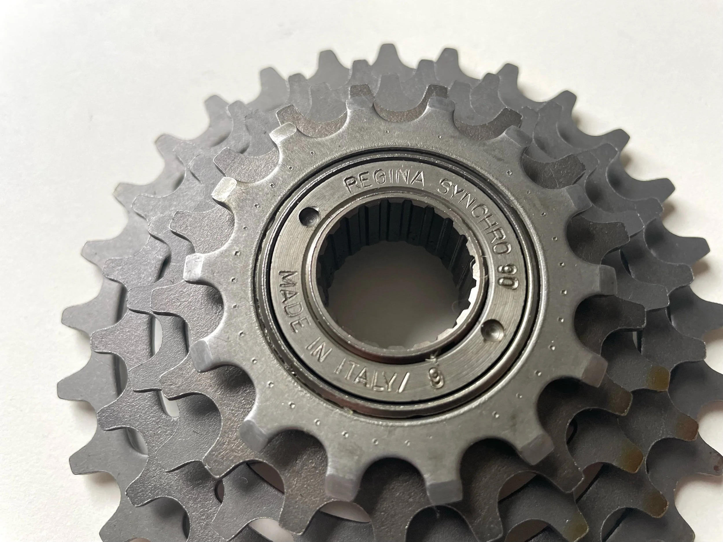 Vintage 1980s REGINA SYNCHRO 5 speed FRENCH freewheel cassette in New Old Stock condition.