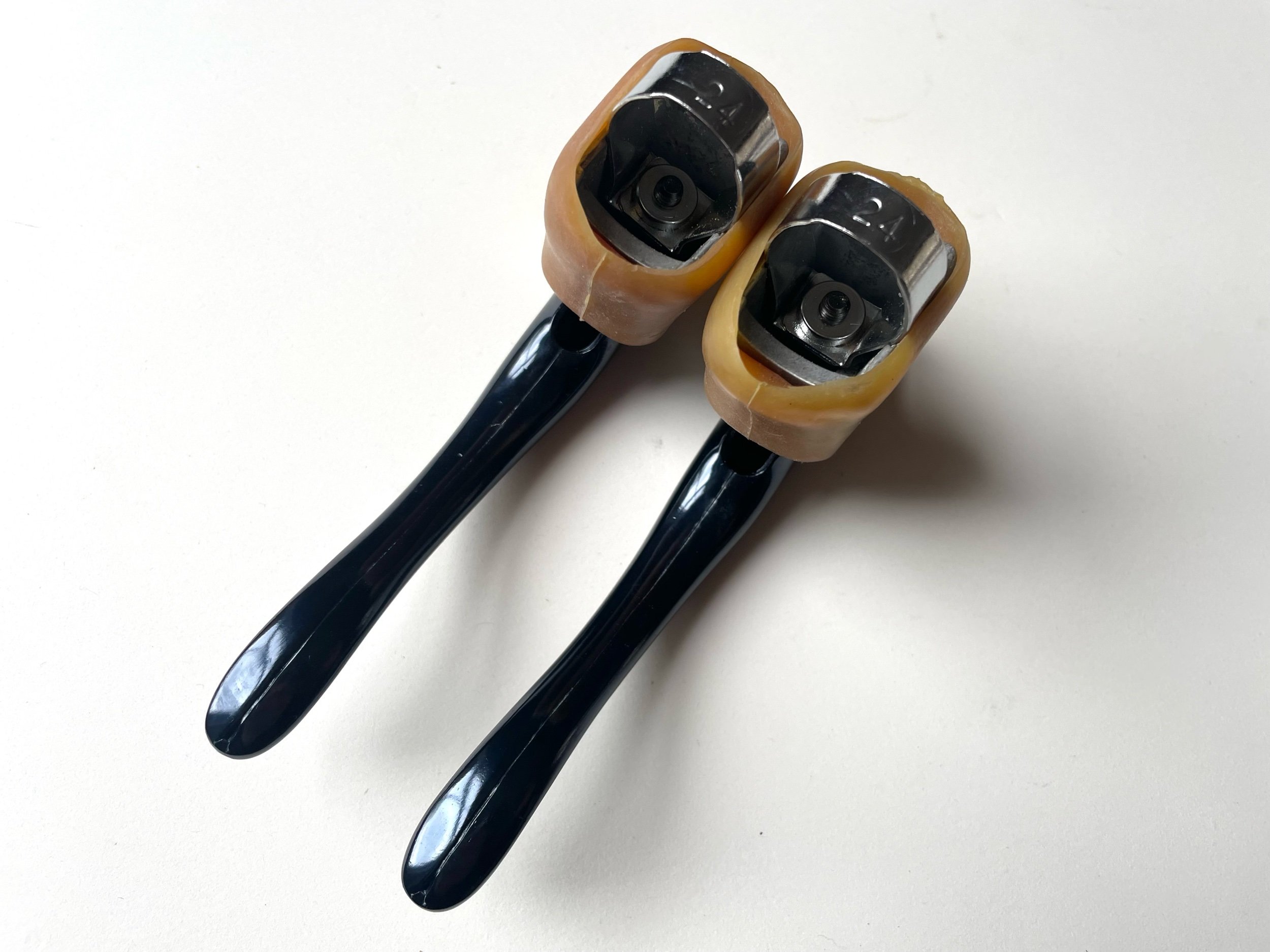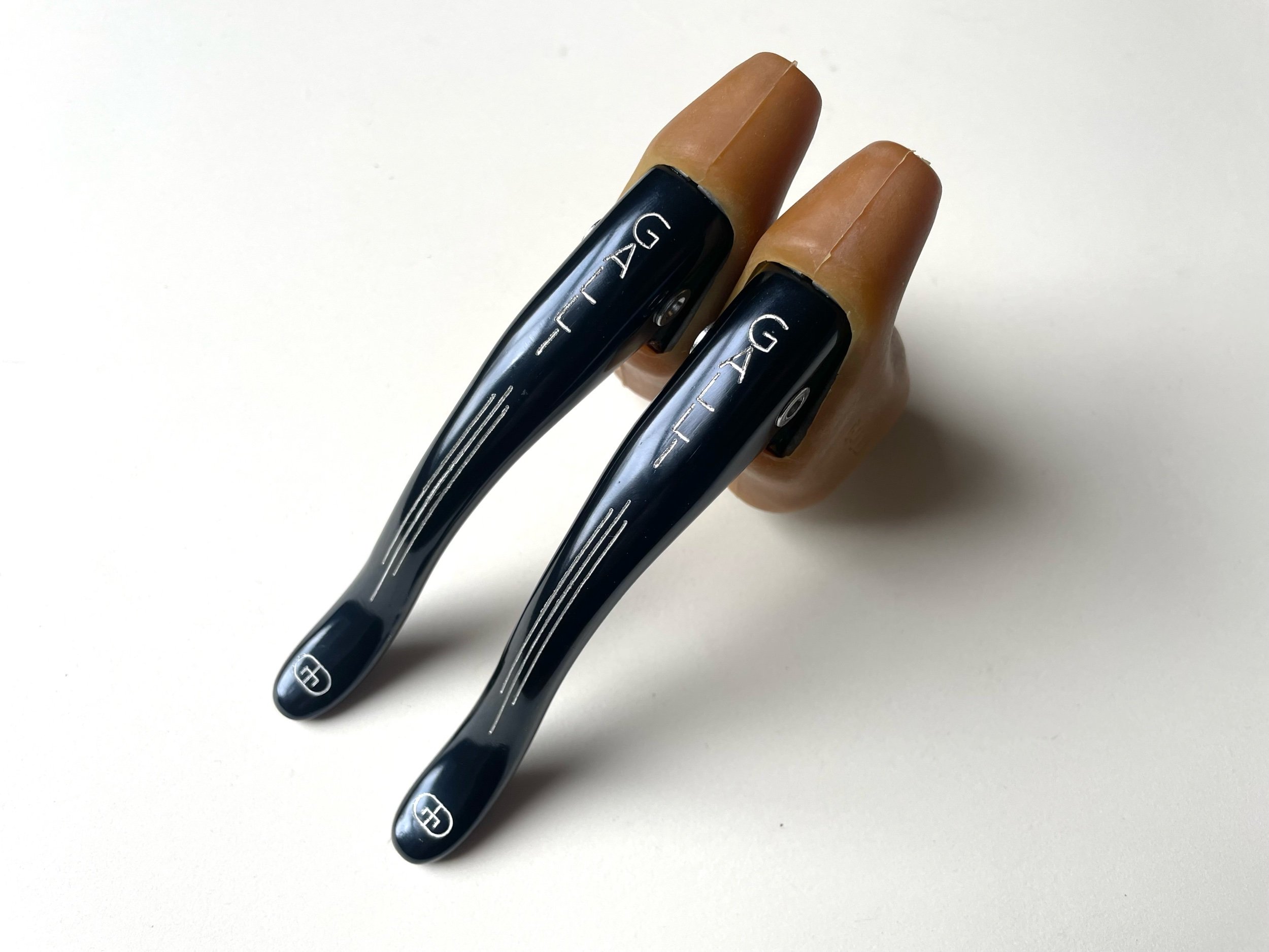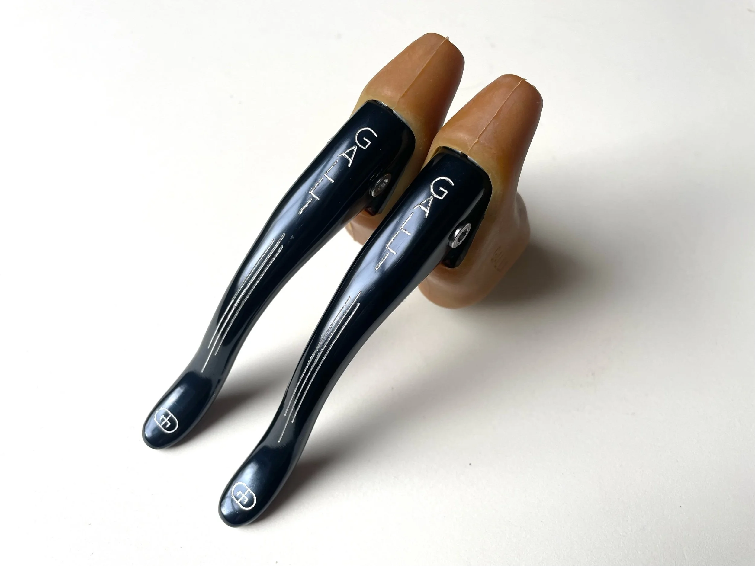 Stunning New Old Stock black brake levers with original gum hoods.