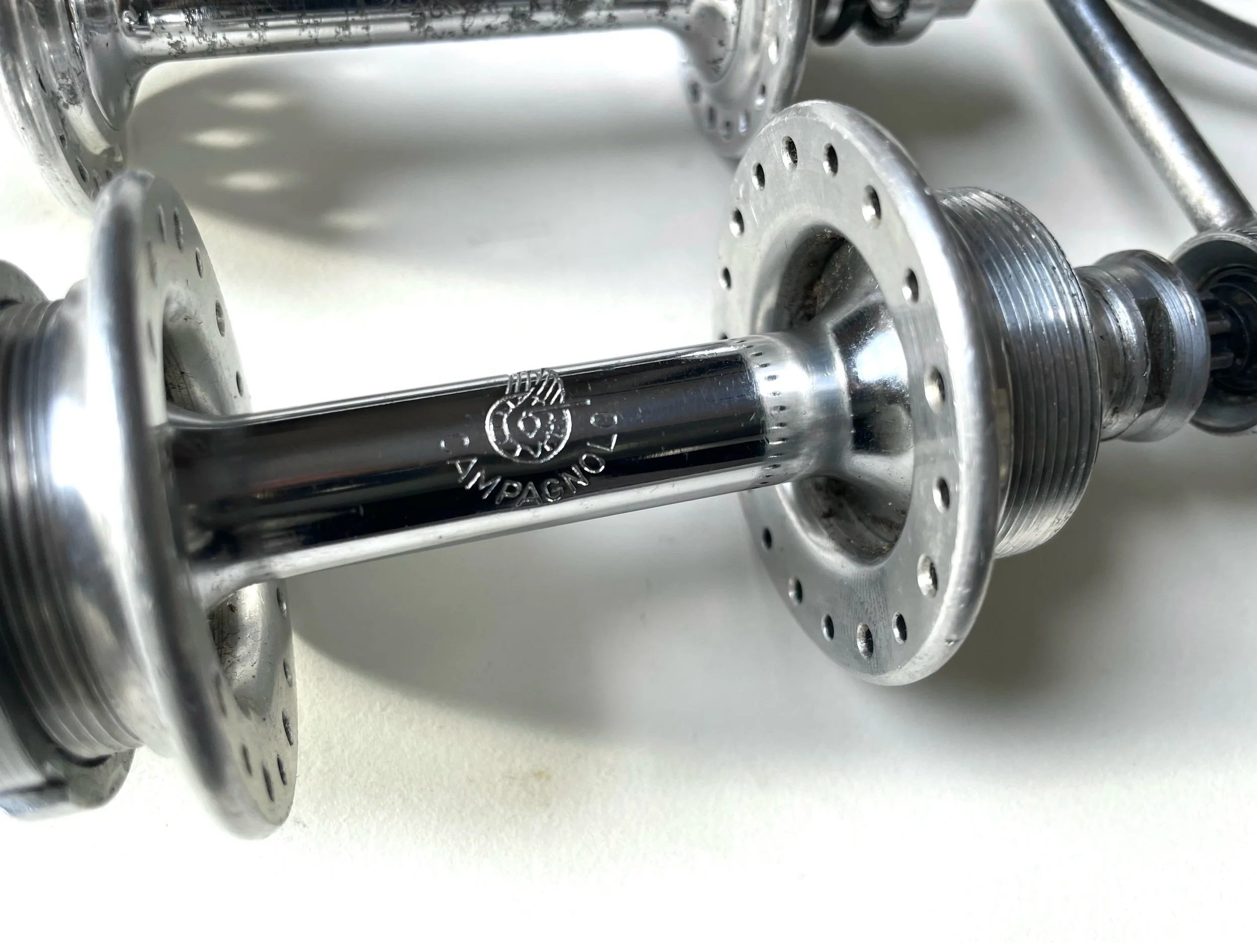 Both hubs spin super smooth, as they have been serviced and fitted with original NOS Campagnolo 1950s cone nuts and bearings, complete with original Campagnolo 'Grasso' grease.
